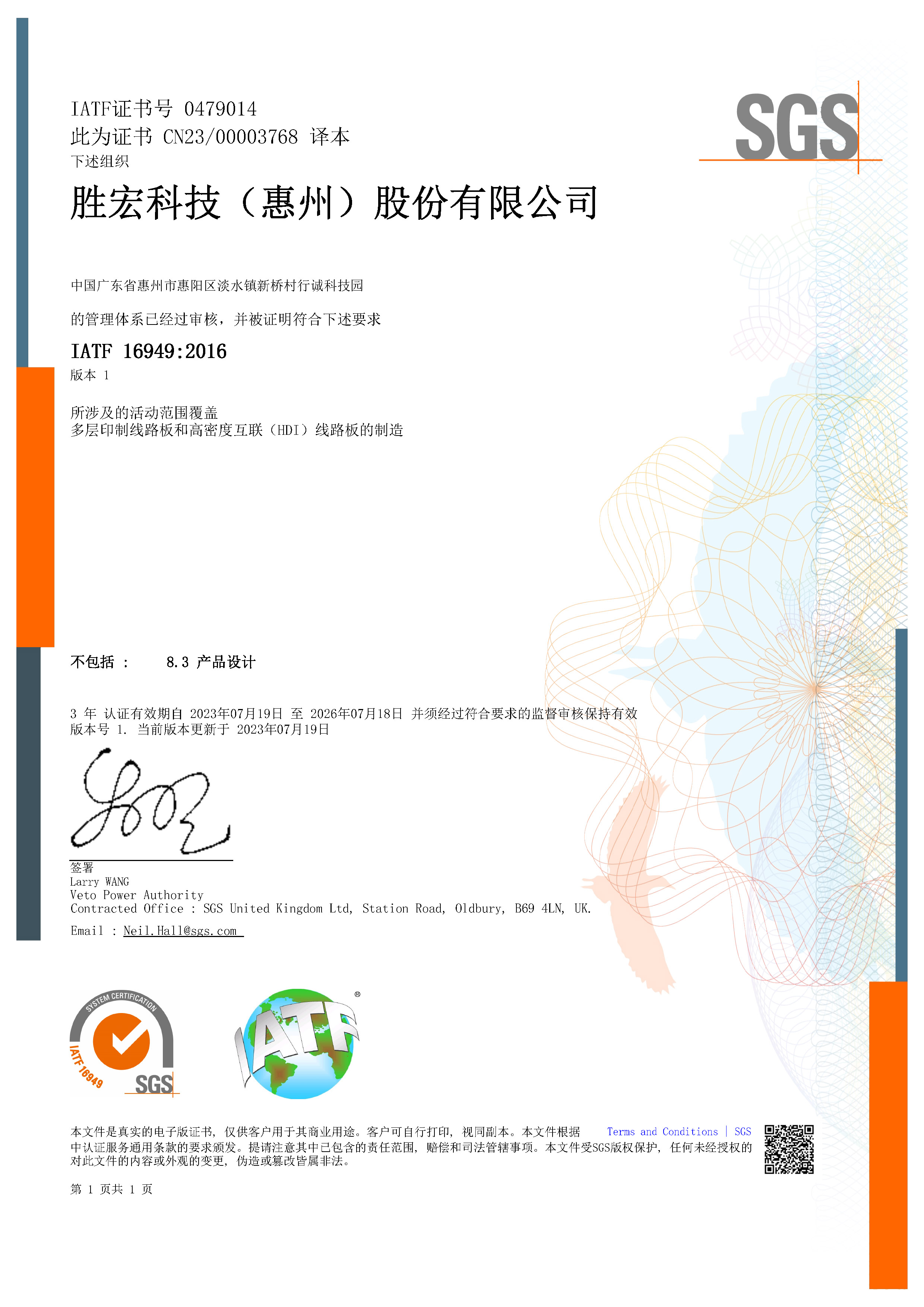 IATF169492016 Automotive Industry Quality Management System Certificate