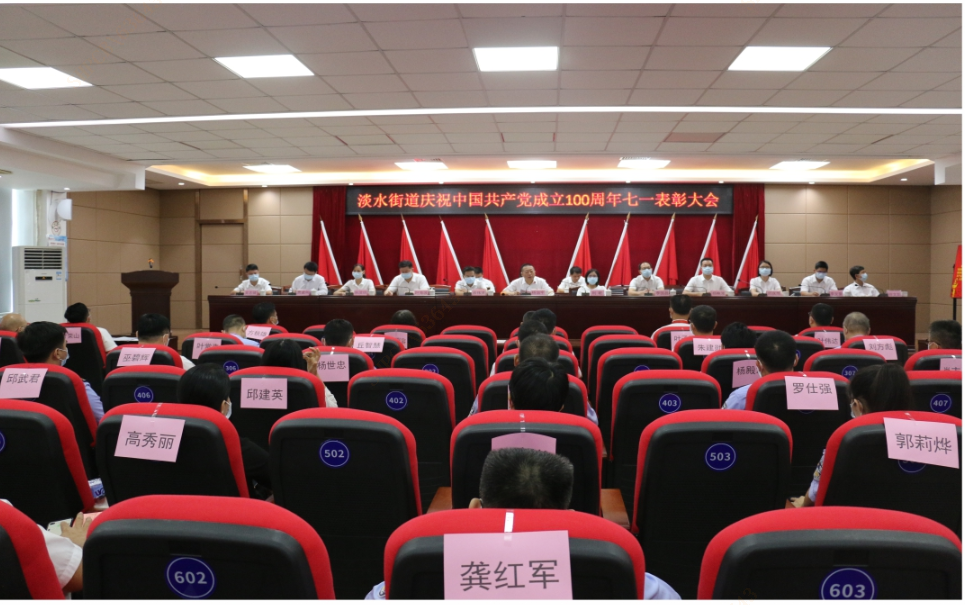 為慶祝建黨 100 周年,表彰先進(jìn)典型,6 月 30 日,淡水街道在五樓大會議室舉辦慶祝建黨 100 周年暨“七一”表彰大會,激勵各級黨組織和廣大黨員不忘初心,牢記使命,奮發(fā)有為,勇當(dāng)先鋒。街道班子成員、各辦(公司)負(fù)責(zé)人、各村社區(qū)黨組織書記、各派出所所長、各市場監(jiān)督管理所所長以及受表彰的先進(jìn)個人和黨組織等約 170 人參加會議。