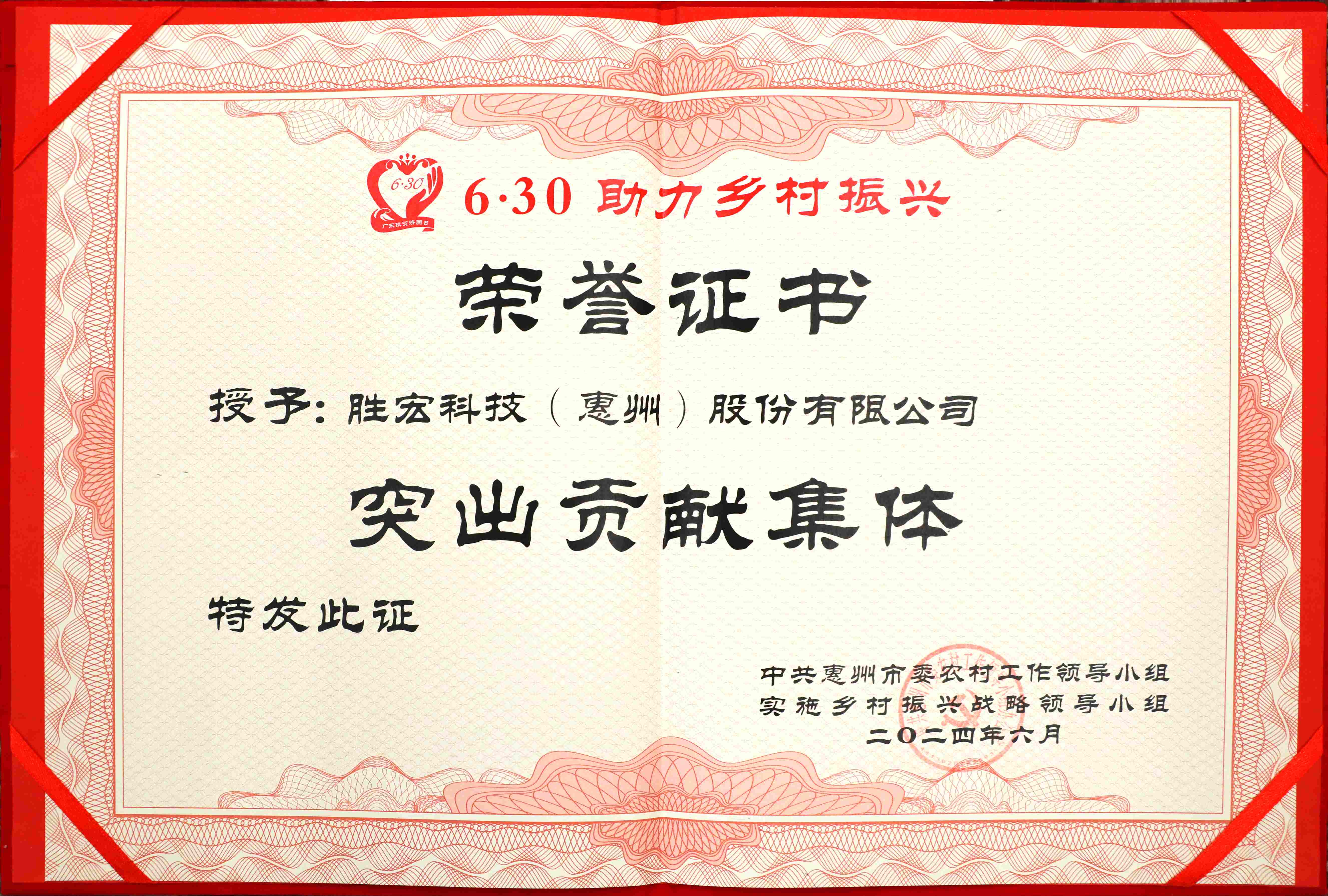 金年會科技榮獲“惠州市2023年度‘6·30’助力鄉村振興突出貢獻集體”獎