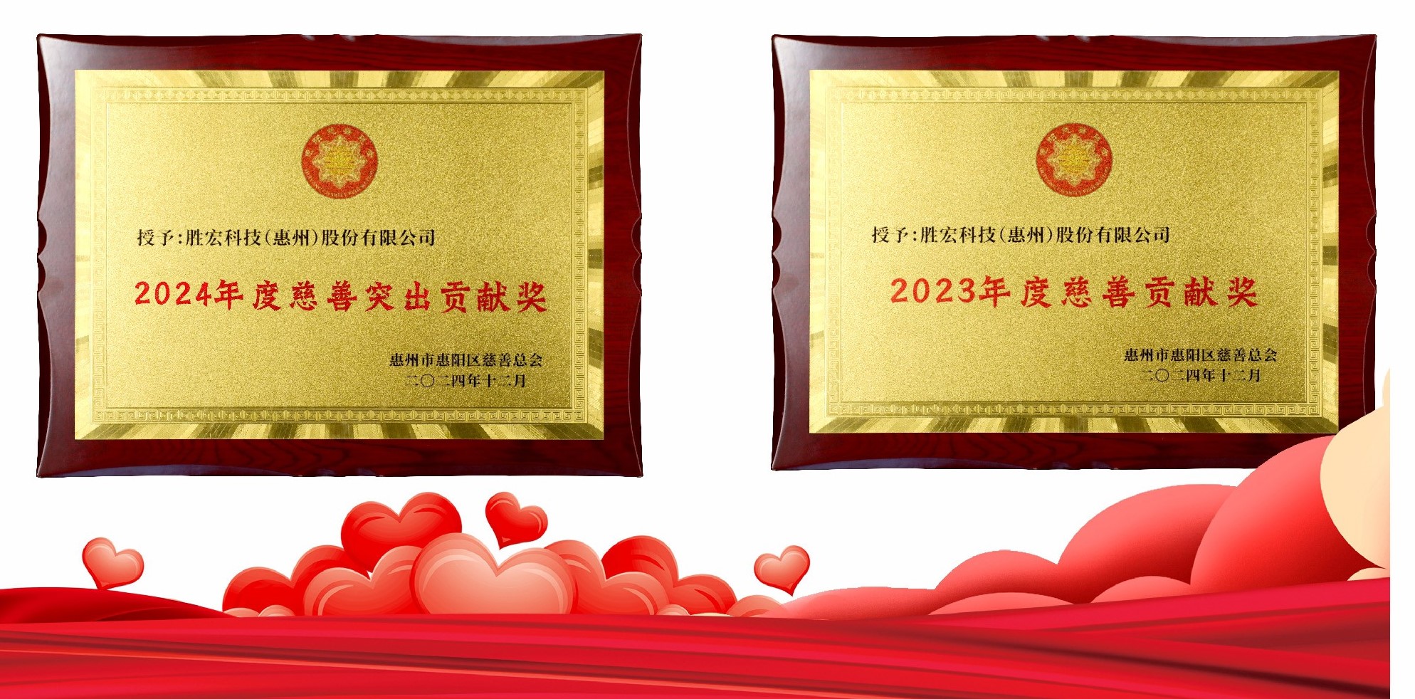 會上,惠陽區慈善總會表彰了2023年度和2024年度在慈善事業發展中作出積極貢獻的33家愛心企業和社會組織。其中,公司榮獲2024年度“慈善突出貢獻獎”和2023年度“慈善貢獻獎”。此次獲獎不僅是對我司在慈善領域所做努力的認可,也是對我司高度的社會責任感和崇高的公益精神的肯定。