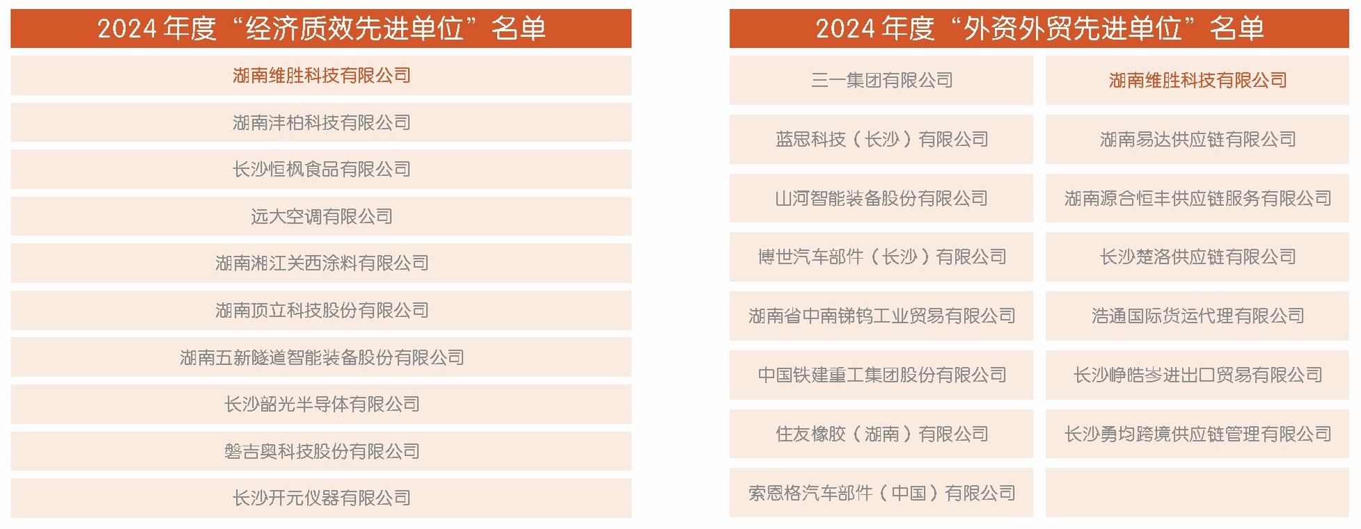 2月19日上午,長沙經開區召開2025年高質量發展大會,現場重磅發布2024年度“光榮榜”,對年度表現突出、貢獻卓越的企業單位予以表彰。維勝科技憑借領先的技術實力和勇于突破的探索精神,榮耀登榜,斬獲“經濟質效先進單位”與“外資外貿先進單位”兩項殊榮。