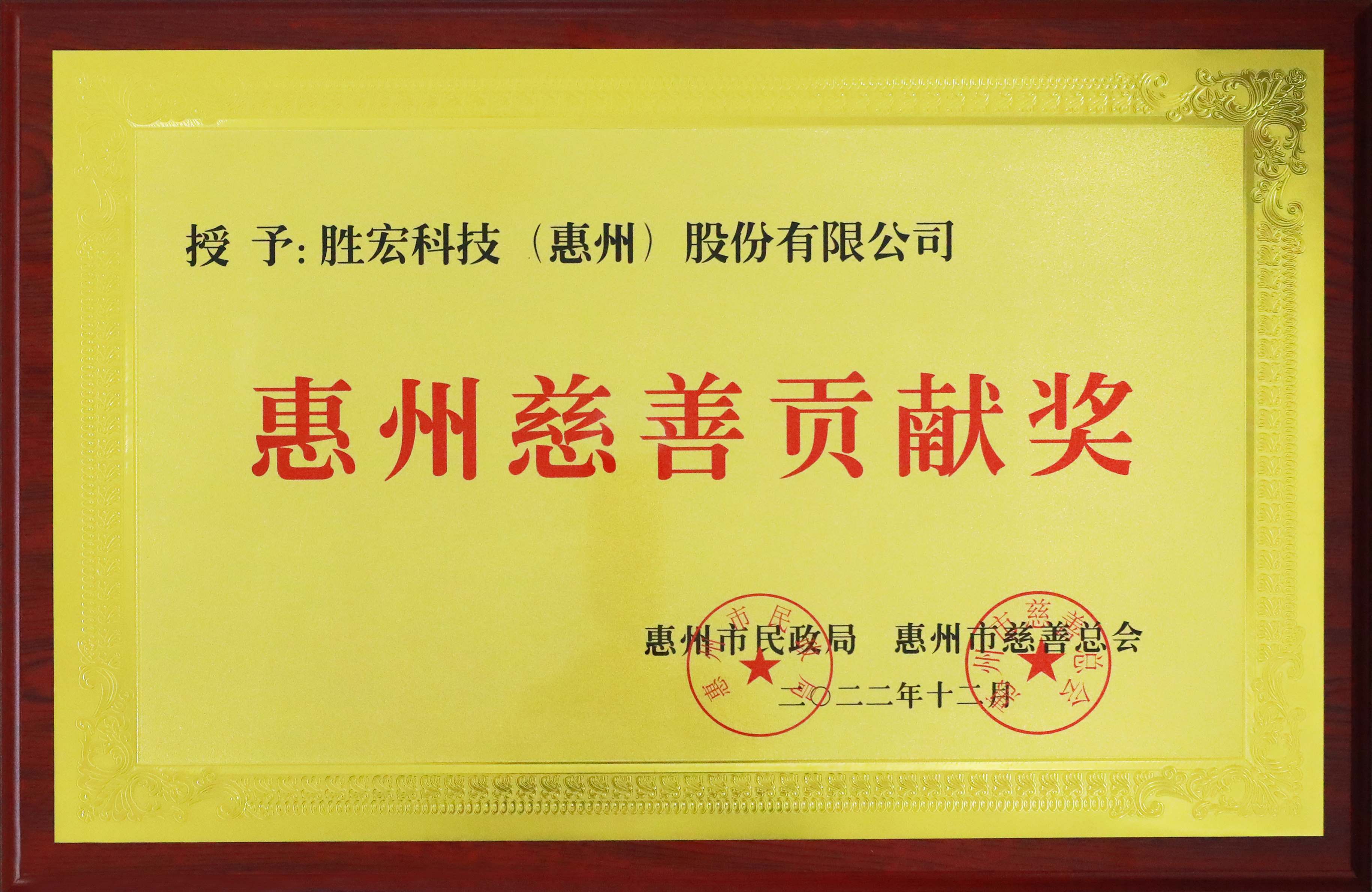 2022年恵州慈善貢獻賞を受賞